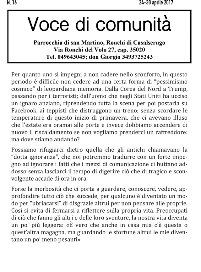 Bertipaglia 23 Maggio 2017 Diario della comunità di BertipagliaMaseràBertipagliaSCARICA PDF: Bertipaglia condividi su