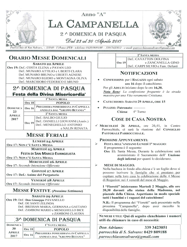 S. Salvaro di Urbana 23 Maggio 2017 La CampanellaMontagnana - MerlaraS. Salvaro di UrbanaSCARICA PDF: San Salvaro di Urbana condividi su
