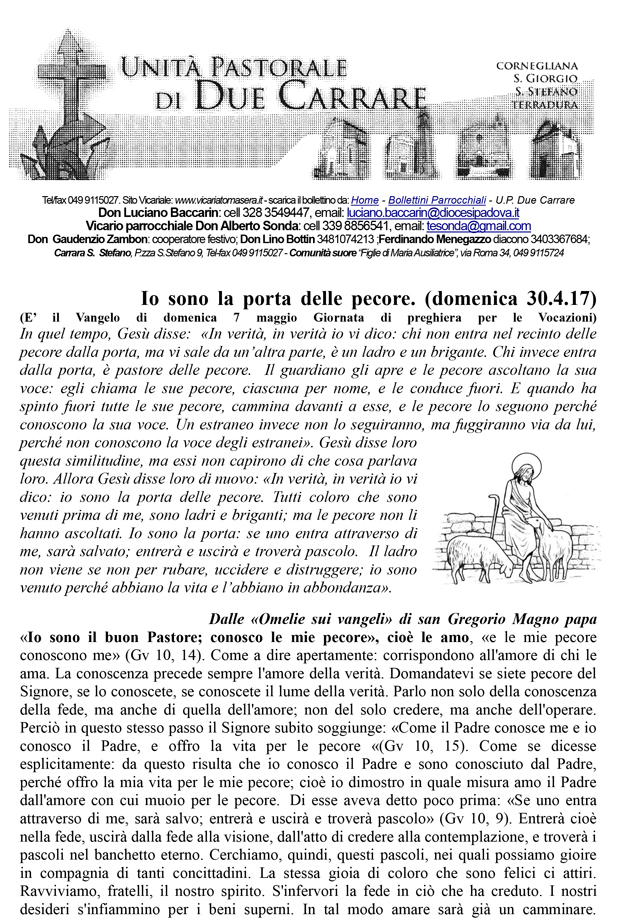 Unità Pastorale di Due Carrare 23 Maggio 2017 Bollettino dell’Unità Pastorale di Due CarrareMaseràUnità Pastorale di Due CarrareSCARICA PDF: bolletino 30.4.17 Quindicinale – 700 copie. condividi su