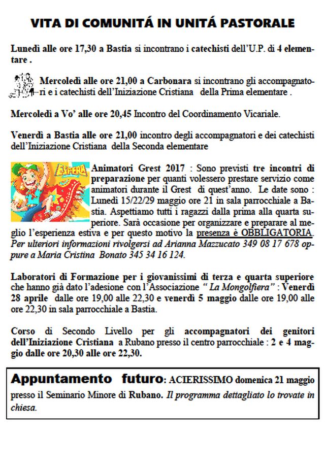 Il bollettino è a disposizione in chiesa e nel sito dell’unità pastorale