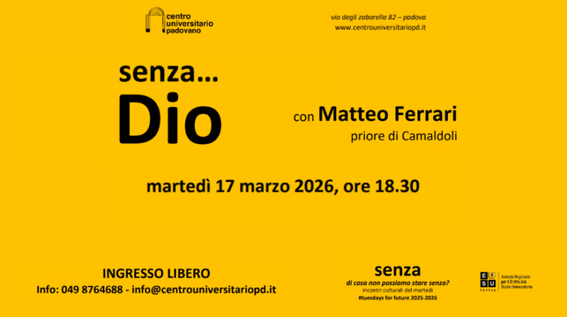 Martedì 17 marzo 2026, alle ore 18.30, interverrà il priore del monastero di Camaldoli, dom Matteo Ferrari, che si soffermerà sul tema “Senza… Dio“.