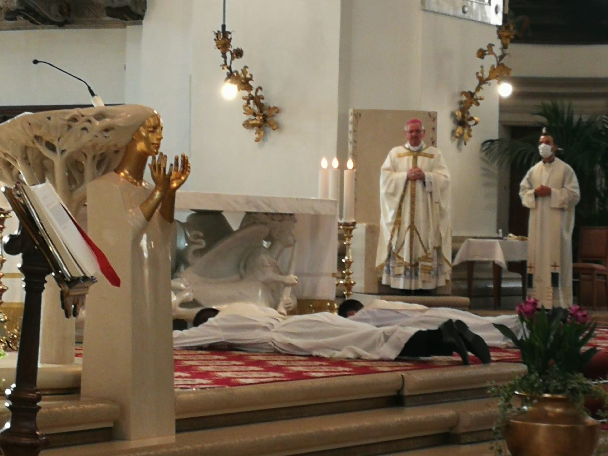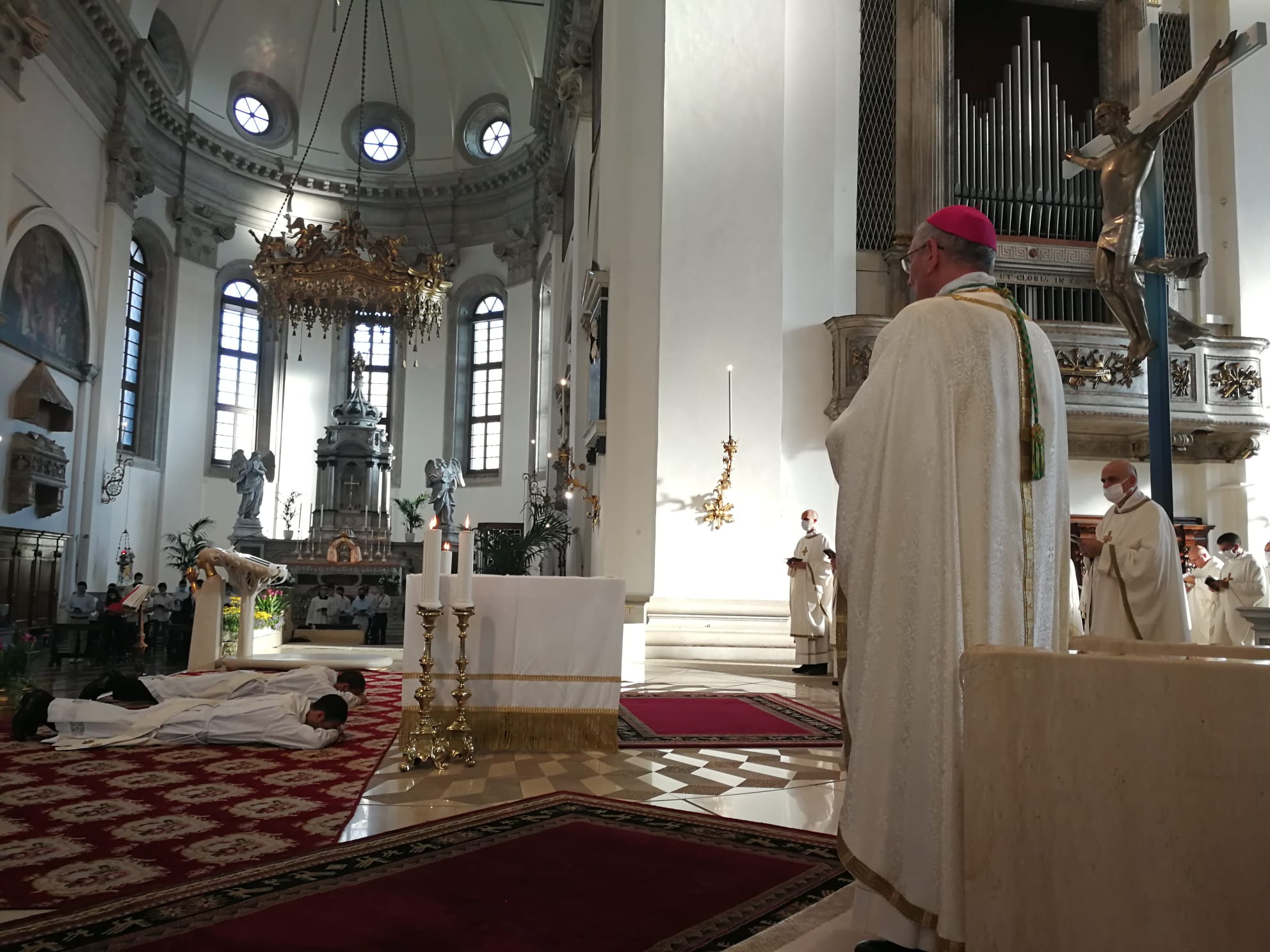 «Saranno ricordati come i preti del Covid-19 – commenta il rettore del Seminario Maggiore, don Giampaolo Dianin, sul settimanale diocesano La Difesa del popolo in uscita questa settimana – quelli ordinati in luglio come succedeva in passato, quelli che non hanno avuto la Cattedrale colma di gente. Faccio fatica a essere triste per tutto questo, anzi sono sobriamente contento che diminuiscano gli aspetto esteriori per far emergere la sostanza e la verità dell’ordinazione presbiterale. In queste settimane ho pensato ai preti ordinati clandestinamente nei Paesi dove la fede era perseguitata, a quelli ordinati nel nascondimento perché nessuna manifestazione pubblica è possibile. Dopo quattro mesi nei quali a tutti i cristiani sono state chieste tante rinunce nella manistestazione pubblica del loro credere, ci sta che anche l’ordinazione presbiterale respiri in sintonia con questo tempo difficile ma anche di grazia […] Sono i preti ordinati nel tempo della prova, e portano con loro la consapevolezza di essere pastori in modo particolare per coloro che sono alla ricerca di Dio, che sono provati e curvati dalla vita, dei giovani confusi o troppo esuberanti, degli anziani e di coloro che sono soli. Fin da primo giorno del loro ministero imparano a stare con i piedi per terra, a confidare di più nella preghiera di intercessione che negli applausi e riconoscimenti pubblici».