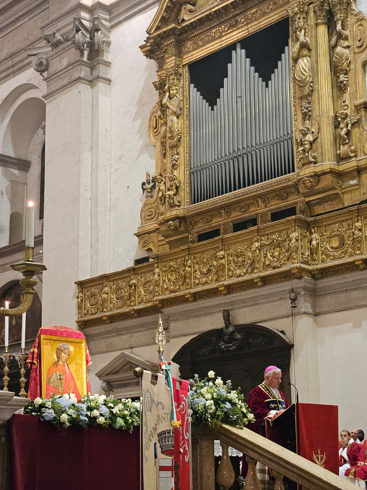 «Giustina – ha sottolineato il vescovo – è uno dei doni fatti alla nostra Chiesa di Padova. Così interpreta il salmo 8 un poeta: «Che cosa siamo noi, che cosa è l’uomo per te, perché te ne curi? Perché sembri soffrire e quasi piangere per noi mortali…?». Importante è mettersi in ascolto della voce che il Signore rivolge ad ogni uomo e ad ogni donna, in contemplazione del suo sguardo verso ogni persona: dalla voce e dallo sguardo di Dio scopriamo la vocazione e la dignità di ciascuno e di ciascuna. Vediamo l’identità originaria durante i giorni che passano, quelli della nostra vita, in attesa di realizzare nel cielo – dove è depositato il nostro nome – il nostro vero e definitivo volto: la vita diventa il tempo per scrivere la nostra personale icona di Gesù».
