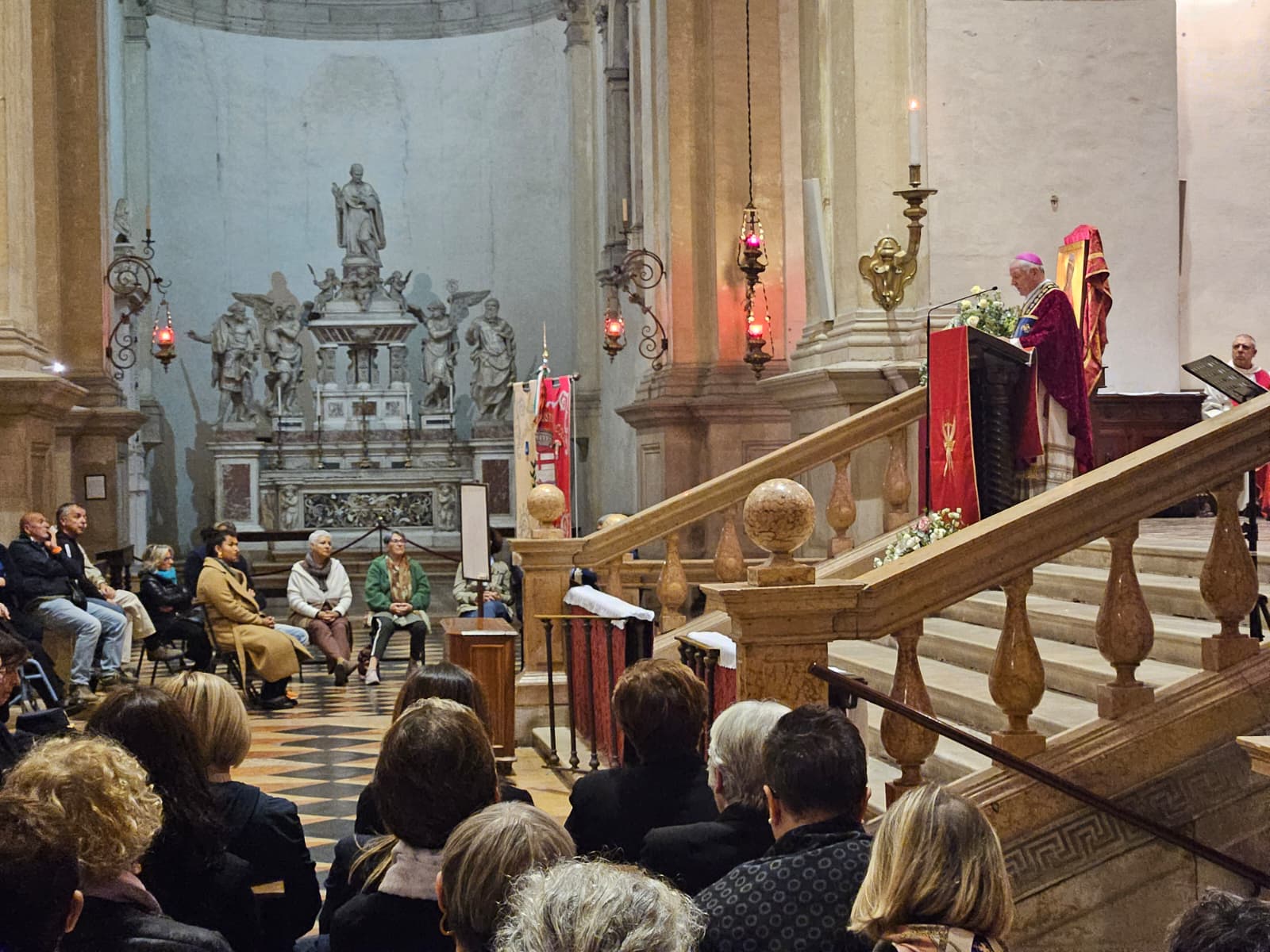 Presente inoltre una corposa delegazione dalla comunità di Santa Giustina in Colle, oltre alla presenza delle delegazioni femminili delle diverse forze dell’ordine, e ancora le Collaboratrici apostoliche diocesane, le consacrate dell’Ordo Virginum e dell’Ordo Viduarum, molte aderenti al Centro italiano femminile e numerossisimi fedeli.