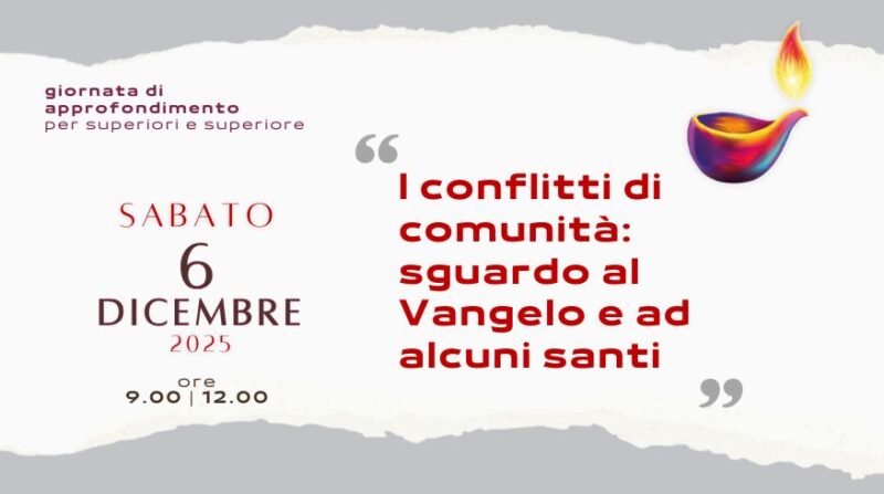 Sabato 6 dicembre 2025 dalle 9.00 alle 12.00 all’Istituto Sant’Antonio dottore in via San Massimo a Padova si svolgerà la giornata di approfondimento per superiori e superiore sul tema: “I conlitti in comunità: sguardo al Vangelo e ad alcuni santi“.