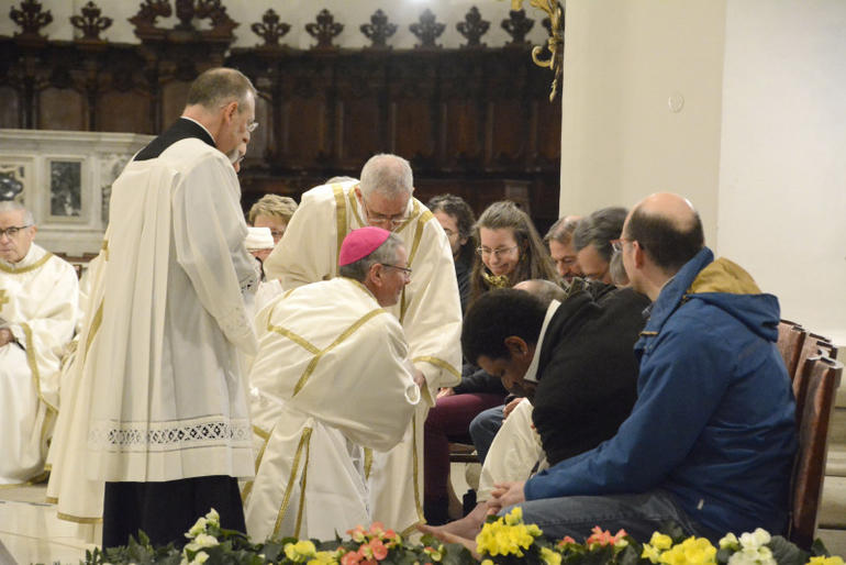 padova, duomo, 24 marzo 2016. vescovo claudio cipolla. lavanda dei piedi. (c) giorgio boato