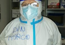 Con il nome scritto con il pennarello sulle tute anti Covid, come medici ed operatori sanitari, don Marco ha vissuto, nel novembre 2020, all’interno dell’ospedale seguendo anche un corso di «vestizione» per apprendere il corretto utilizzo dei dispositivi di protezione in dotazione ai sanitari. Bardato con camice, calzari, cuffietta, visiera, guanti e mascherina ha fatto quotidianamente il giro dei malati colpiti dal virus per portare conforto e fiducia, sostenendo le famiglie di coloro che hanno perso i propri cari.