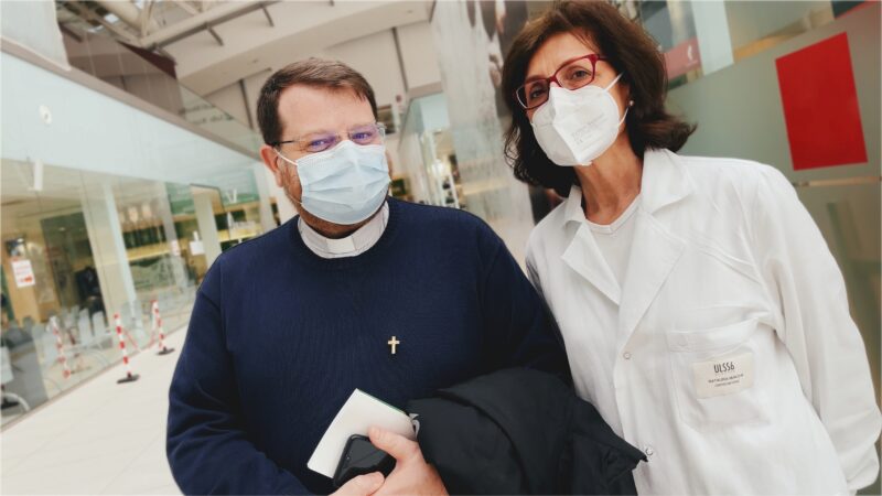 «La prima medicina che somministro – spiega Don Marco – è quella della speranza. Spesso le persone ricoverate, soprattutto nei primi giorni, sono intimorite dalla malattia che non sanno come evolverà. Io le ascolto e prego con loro. Anche se, secondo i protocolli, la visita deve essere veloce vedo che, di solito, quando si comincia a pregare, le persone si rasserenano. Bisogna far sentire meno soli gli ammalati perché il virus isola molto. C’è proprio il desiderio di una parola di conforto, l’isolamento è un tempo in cui si può diventare tristi, impauriti, e la vicinanza di qualcuno aiuta a superare questi stati d’animo».