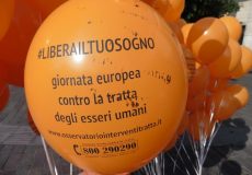 Nella decima giornata europea contro la tratta in varie piazze e città d’Italia si è tenuto un lancio simbolico di palloncini arancioni per liberare, come afferma la rete degli organizzatori “il sogno di molti bambini, donne e uomini del pianeta che vengono sfruttati”.