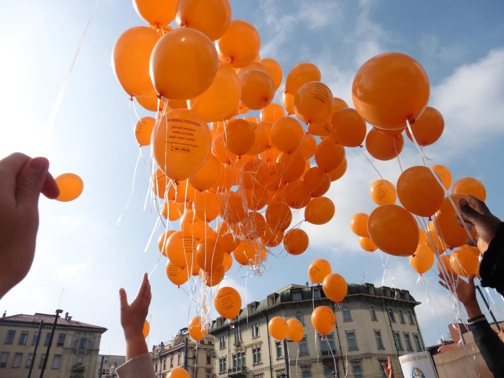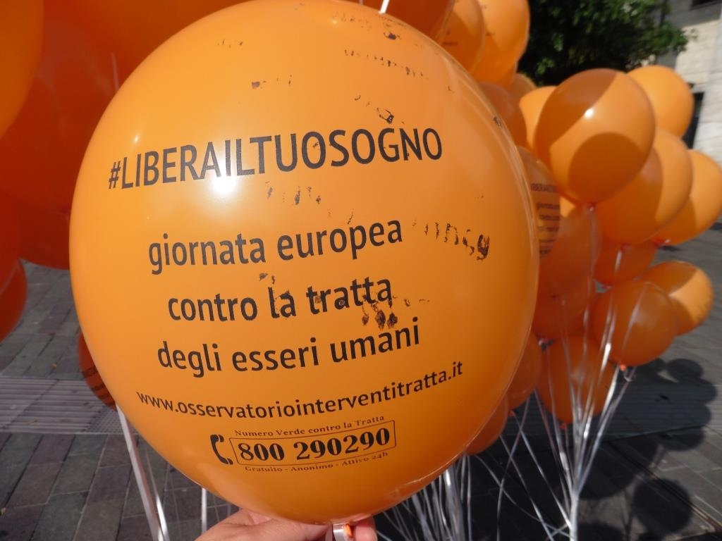 Nella decima giornata europea contro la tratta in varie piazze e città d’Italia si è tenuto un lancio simbolico di palloncini arancioni per liberare, come afferma la rete degli organizzatori “il sogno di molti bambini, donne e uomini del pianeta che vengono sfruttati”.