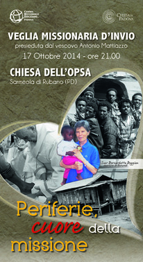 Quest’anno la Veglia di preghiera missionaria si svolge venerdì 17 ottobre, alle ore 21, nella chiesa dell’Opera della Provvidenza di Sarmeola di Rubano. Presieduta dal vescovo mons. Antonio Mattiazzo, la veglia prevede momenti di preghiera, l’accoglienza dei missionari rientrati quest’anno e il rito dell’invio con la consegna della croce per quanti, presbiteri e laici, partiranno nei prossimi mesi.
