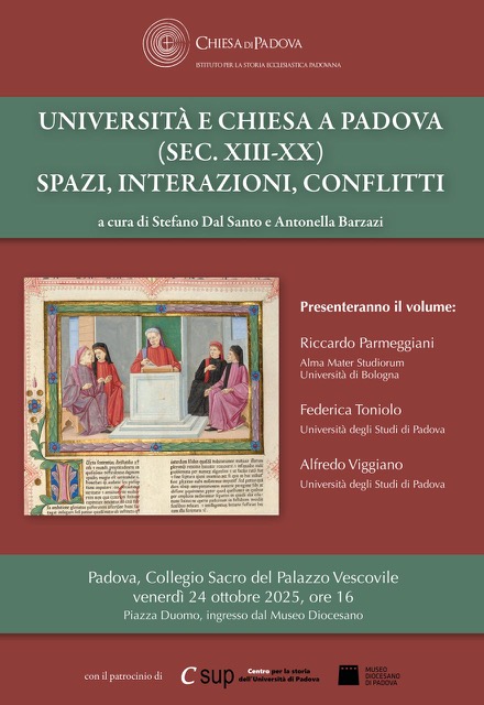 L'incontro, organizzato dall'Istituto per la storia ecclesiastica padovana, ha il patrocinio del Centro per la storia dell'Università di Padova e del Museo diocesano di Padova.