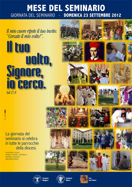Lo slogan che accompagna il mese del seminario è stato preso dal salmo 27,8: “Cercate il mio volto! Il tuo volto, Signore, io cerco”. È un forte invito alla sequela che ha i tratti della chiamata (cercate!) e della risposta (il tuo volto io cerco).