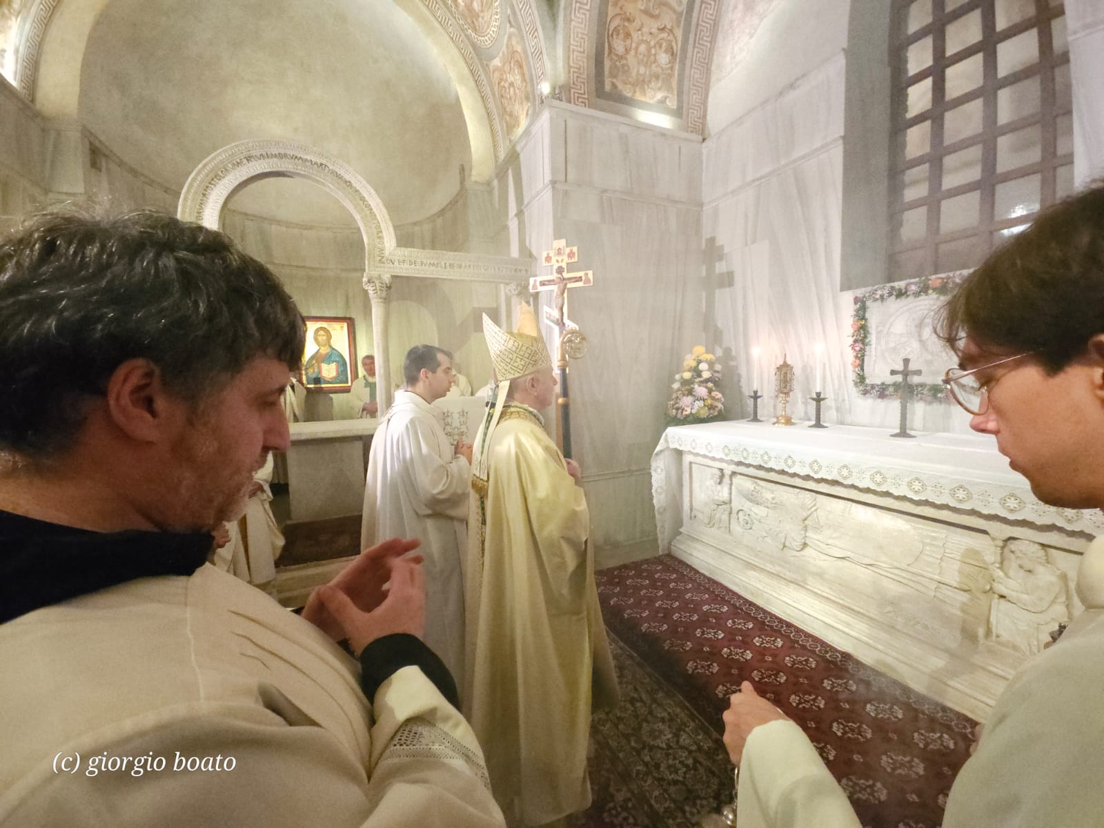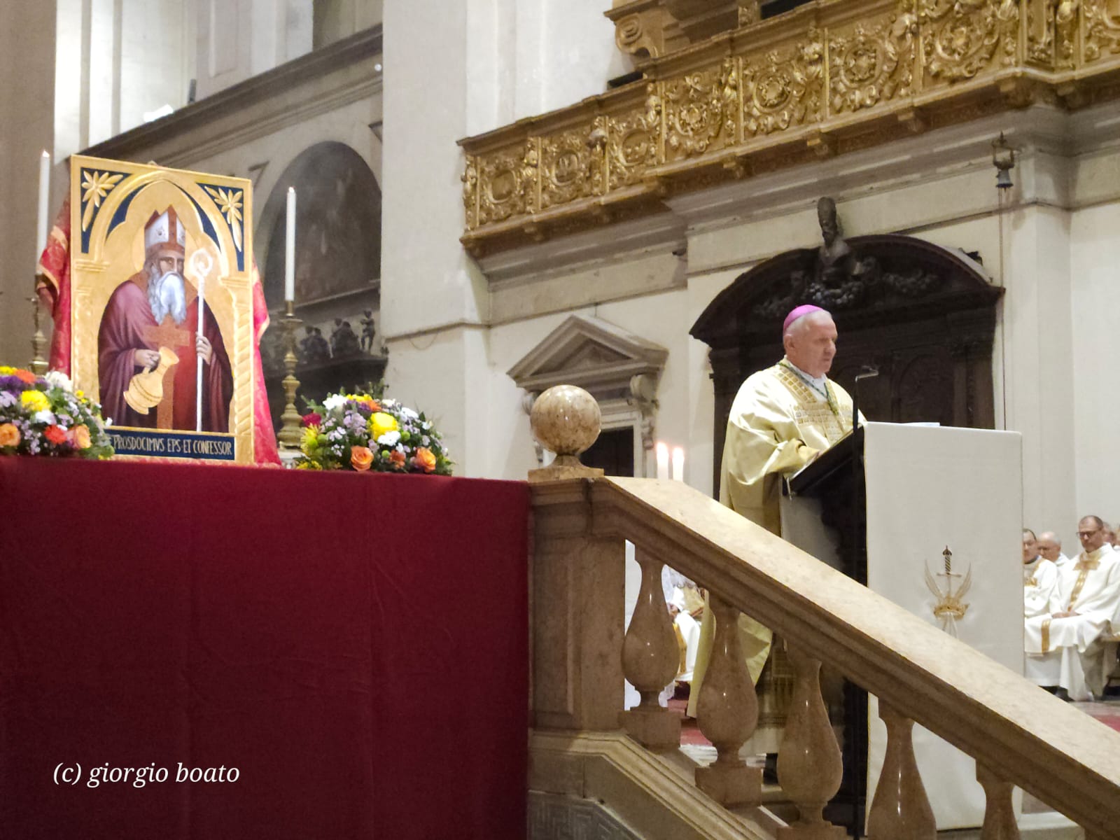 Il vescovo di Padova, mons. Claudio Cipolla, ha presieduto la solenne celebrazione eucaristica alle ore 18.30, nella basilica di Santa Giustina, dove si trova la tomba del santo vescovo, a cui ha reso omaggio al termine della messa.