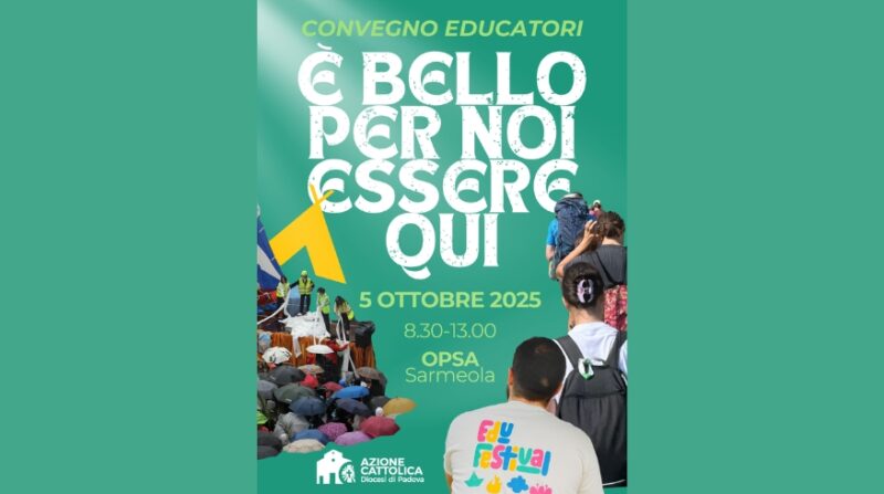 Si svolgerà domenica 5 ottobre il tradizionale convegno di apertura del nuovo anno associativo 2025/26 dell’Azione cattolica diocesana dal titolo “Signore, è bello per noi essere qui”. L’appuntamento è dalle 8.30 alle 13.00 all’OPSA in via della Provvidenza 68 a Sarmeola di Rubano (PD). Il tema è tratto dal Vangelo scelto per quest’anno: ognuno di noi brilla, a partire da una scelta e da una trasformazione … Continua a leggere