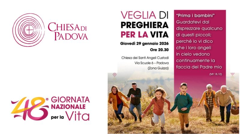 A ridosso della 48a Giornata nazionale per la vita, che si terrà domenica 1 febbraio sul tema “Prima i bambini!”, la Pastorale della famiglia della Diocesi di Padova propone un momento di preghiera con la Veglia di preghiera per la vita in programma giovedì 29 gennaio alle ore 20.30 nella chiesa dei Santi Angeli Custodi in via delle Scuole 6, zona Guizza, a Padova. Durante … Continua a leggere