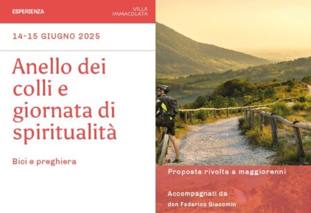 Montegrotto – Battaglia – Monselice – Este – Lozzo – Bastia – Praglia – Abano – Montegrotto – è la ciclovia E2 dei Colli Euganei di 62 km. Quattro ore tranquille di pedalata. Sei con le fermate e il pranzo. Otto con la visita a qualche posto come Este o Monselice. Una semplice bici può realizzare il percorso tranquillamente. Quella con pedalata assistita recuperabile a Montegrotto, aiuta di più. Si percorrerà insieme l’anello e si contempleranno i colli nel loro perimetro, guardandoli continuamente accompagnati da corsi d’acqua.La proposta è di vivere la giornata del sabato in bici, tra una paese e l’altro, con la propria bicicletta o noleggiandola presso un negozio del luogo. Viene chiesto, poi, ai partecipanti di cenare e pernottare presso la casa di spiritualità per poter vivere nella domenica una giornata di spiritualità, fatta di preghiera, di silenzio, di celebrazione dell’eucaristia e anche di confronto. L’esperienza si concluderà con il pranzo della domenica. L’esperienza è indivisa: è fatta di entrambi i giorni in quanto il sabato richiede l’esperienza spirituale della domenica e viceversa.