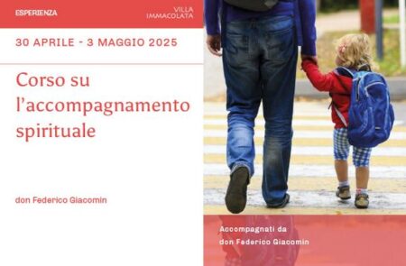 Da mercoledì 30 aprile a sabato 3 maggio è in programma a Villa Immacolata a Torreglia un Corso sull’accompagnamento spirituale – dalla teoria alla prassi. I giorni sono pensati come laboratoriali a partire dalle proprie esperienze di accompagnamento. Condividendo le proprie esperienze ci accomuneremo sulla riflessione. La prassi aiuterà e la riflessione si di essa aiuterà la teoria. Per prepararsi all’esperienza è auspicabile aver letto Caro Cleopa, ho qualcosa da dirti, il discernimento per tutte le stagioni di vita, F. Giacomin, ed. il Pozzo di Giacobbe. Accompagna don Federico Giacomin, presbitero della Diocesi di Padova, direttore di Villa Immacolata, accompagnatore della formazione dei presbiteri con qualifica di specializzazione per formatori vocazionali presso lo IUSVE di Mestre nel 2007.
