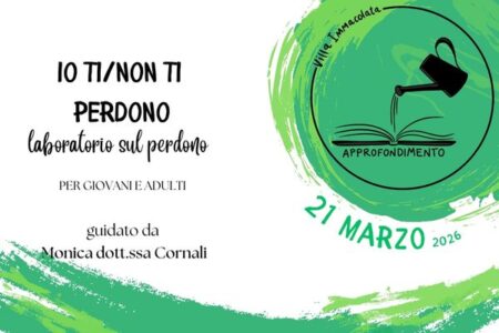 “Io ti/non ti perdono” è un incontro volto a promuovere il perdono come stile di vita, non per qualche ingiunzione morale, ma per aver compreso che è necessario per stare bene e quindi far stare bene. Il perdono è un processo e come tale va percorso passo dopo passo. L’incontro e l’esperienza proposta, in programma sabato 21 marzo dalle ore 15.00 a Villa Immacolata a Torreglia (PD), verterà sull’esplorare alcune metodologie per facilitarne il processo.