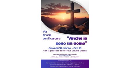 Anche io sono un uomo è il tema della Via Crucis con il carcere promossa e organizzata da: “parrocchia” del Carcere “Due palazzi”, cappellania della Casa circondariale, parrocchie di San Bartolomeo di Montà e Sant’Ignazio, Consulta delle aggregazioni laicali, Caritas diocesana, in accordo con l’Amministrazione penitenziaria.